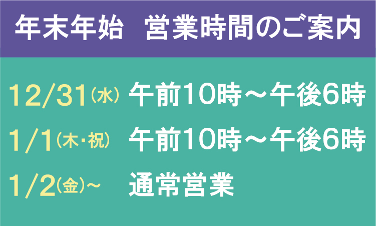 (月~土:午前8時~午後7時、日・祝:午前9時~午後6時)