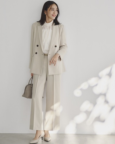 ワイドパンツのエアリースタイルを