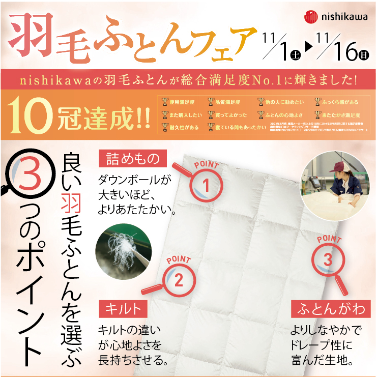羽毛ふとんフェア期間:11/1(土)~11/16(日)
