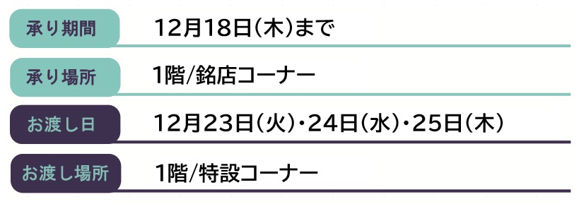 受注承り開始日:11月7日(金)~ 場所:3Fお歳暮ギフトセンター・1F食品サービスカウンター