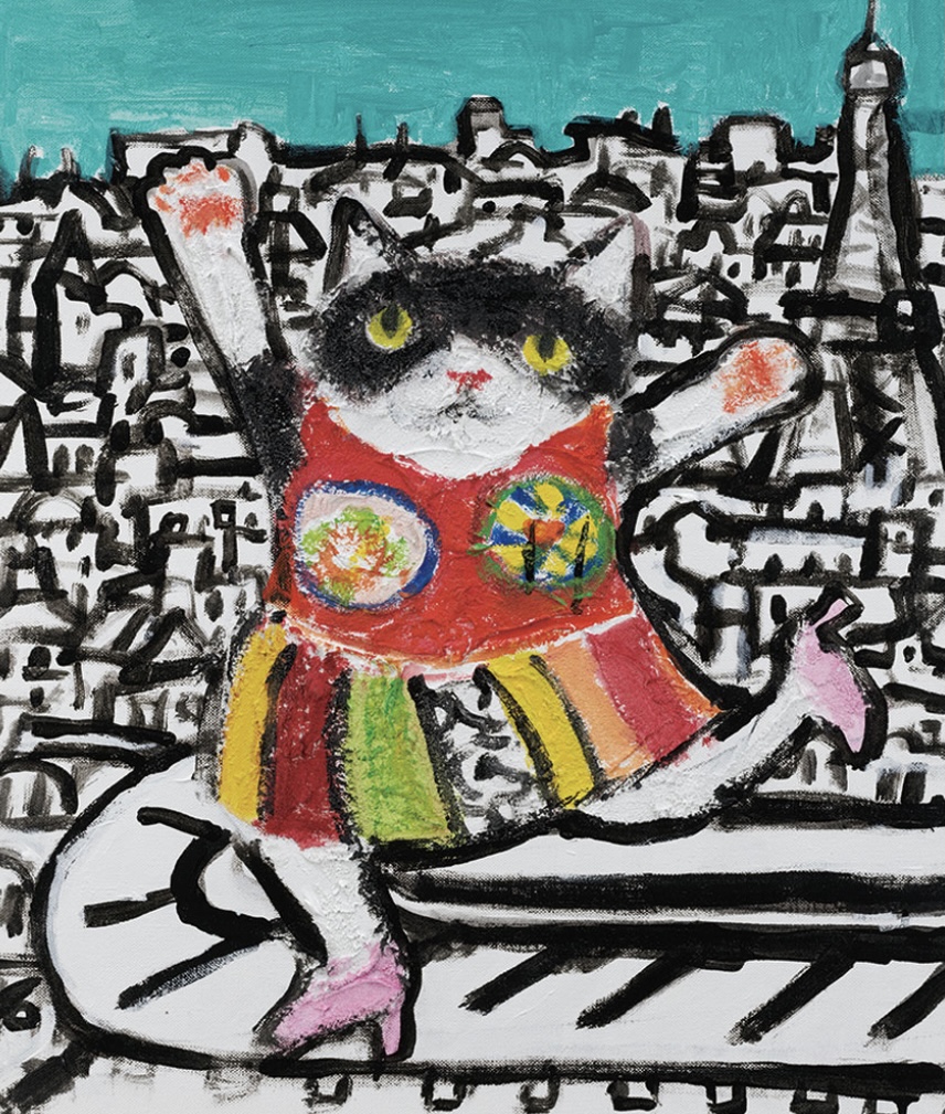愛猫を主人公に、多彩な表現方法でのびやかに描かれる作品は、見る者を魅了して離しません。