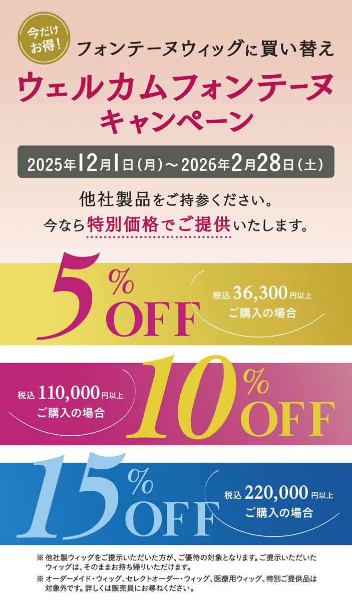 お得にウィッグを買い替えるチャンスとなっておりますので、
