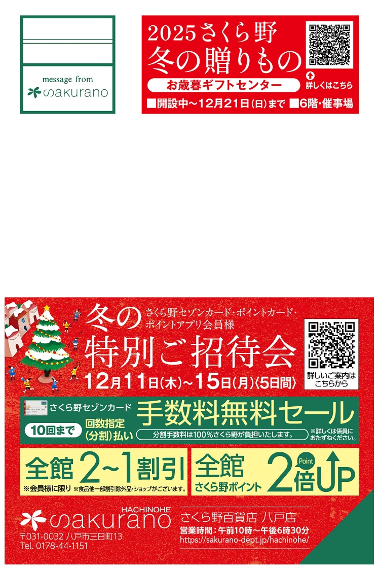 さくら野セゾンカード感謝デー 特別クーポン期間:12/5(金)~12/7(日)
