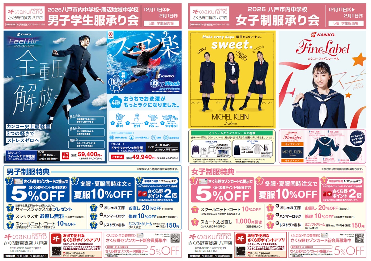 2026年度 八戸市内中学校・周辺地域中学校 制服承り会