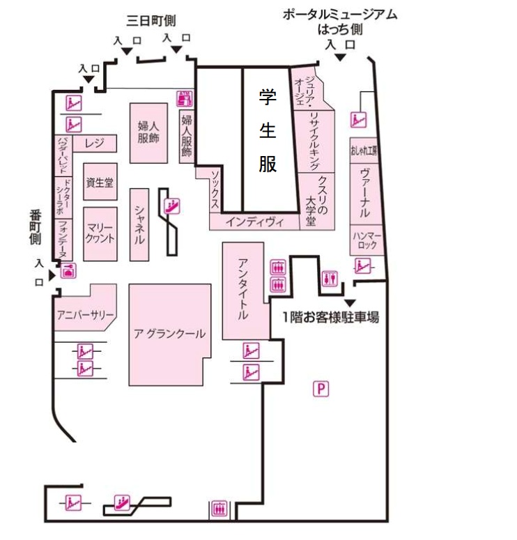 ・地下1階:食料品(生鮮・加工・銘菓・ギフトカウンター)、イートインのフロア