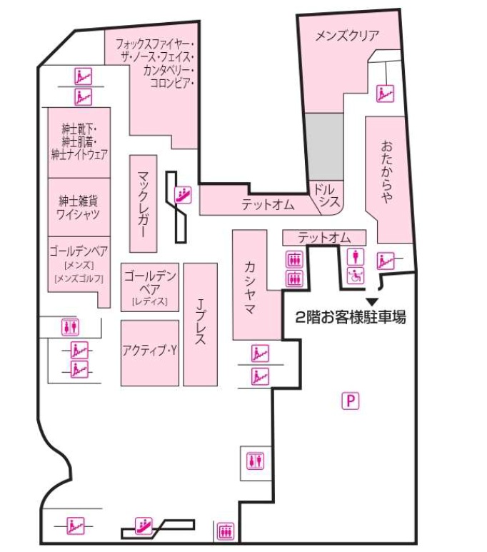 ・2階:紳士服、紳士服飾雑貨、アウトドアのフロア