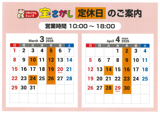 <定休日カレンダー>