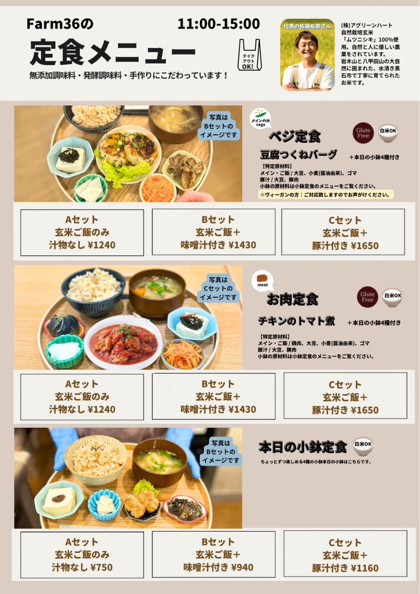 【自然食ご飯で美味しく健康に】をコンセプトに、腸内環境を整える米糠付きのお米(玄米)は自然農たくろん玄米を使用。
