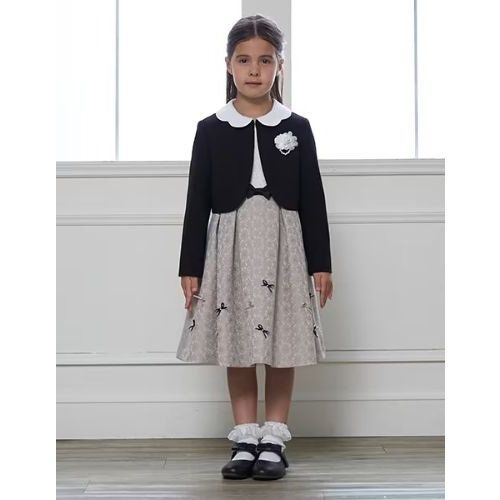 上品なジャガード素材のワンピースに散らされたリボンが