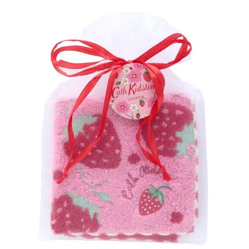 大きないちご柄がめ目を引くタオルはふわふわで